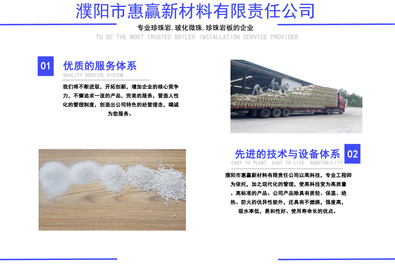 濮陽市惠贏新材料有限責(zé)任公司是一家專業(yè)生產(chǎn)保溫材料的廠家,位于范縣王樓鎮(zhèn)工業(yè)區(qū),專業(yè)生產(chǎn)珍珠巖、珍珠巖保溫板、玻化微珠等保溫建材,主要用于外墻保溫、屋面保溫、園藝等領(lǐng)域,產(chǎn)品暢銷國內(nèi)外,深受客戶一致好評(píng)。我們擁有優(yōu)秀的產(chǎn)品和服務(wù),在成立以來都以誠信對(duì)待客戶! 公司擁有各類專業(yè)人才,技術(shù)人員50人,運(yùn)輸40人,專業(yè)的十多輛運(yùn)輸車輛。產(chǎn)品銷售網(wǎng)絡(luò)遍及國內(nèi)20多個(gè)省市,十幾年來,通過公司的不懈努力和誠信經(jīng)營理念,產(chǎn)品質(zhì)量可靠,價(jià)格合理,深受廣大客戶認(rèn)可和好評(píng)! 我公司本著以客戶為本,客觀實(shí)際,創(chuàng)新發(fā)展的原則,在追求完美極致的道路上努力打造行業(yè)新標(biāo)準(zhǔn),我公司憑借卓越的產(chǎn)品質(zhì)量、完善的服務(wù)標(biāo)準(zhǔn)、良好的口碑信譽(yù)、竭誠歡迎廣大客戶前來洽談業(yè)務(wù)!...